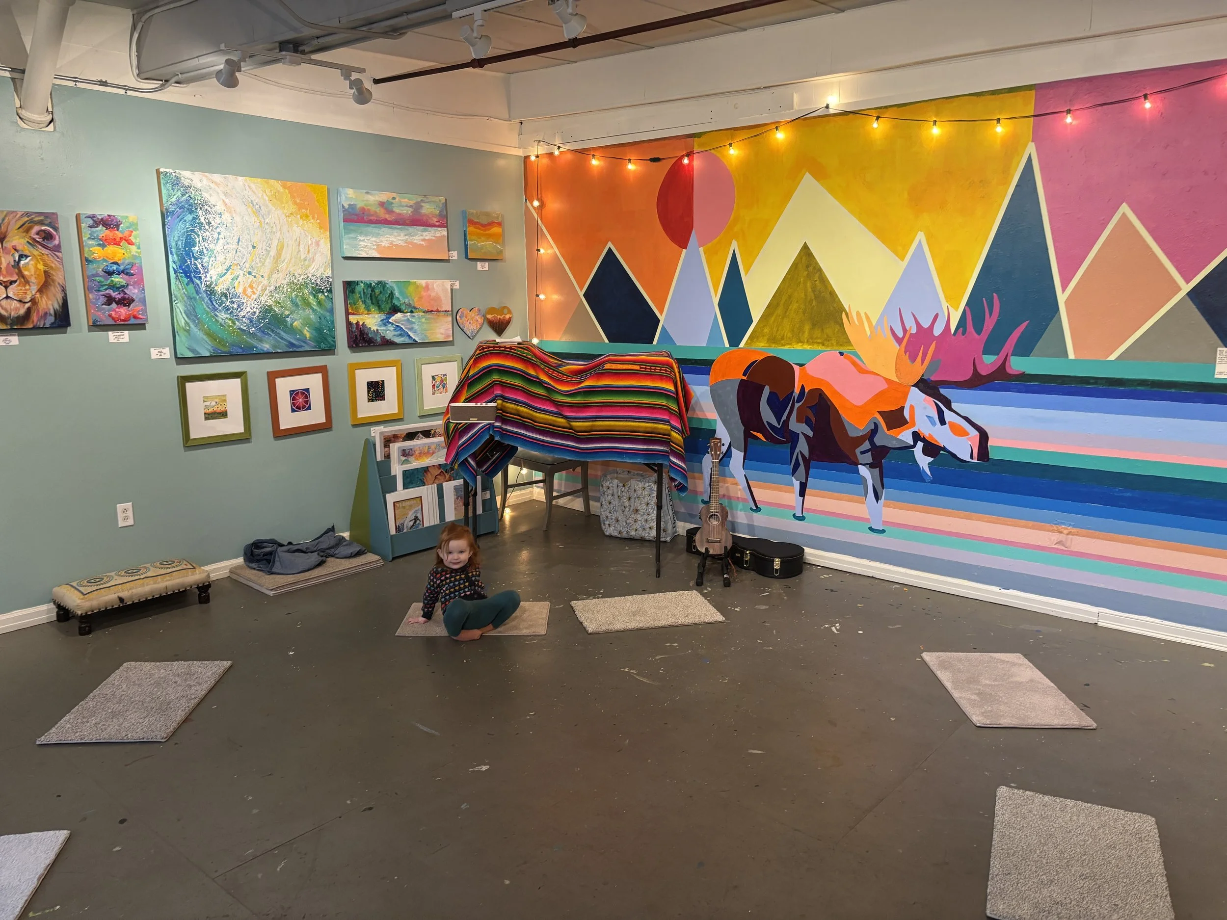 Marigold Gallery is located at 4 Howard St. in Burlington’s South End. To enter the building, which is a shared artist space, you will need to ring the doorbell, and I will come to meet you! This has turned into a fun ritual for the kids :)